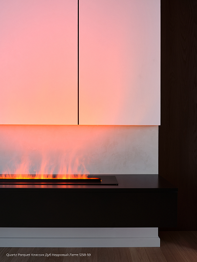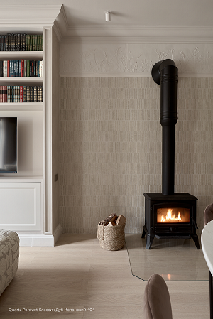 Кварцпаркет создаёт комфорт в любое время года — даже когда пламя в камине уже погасло.