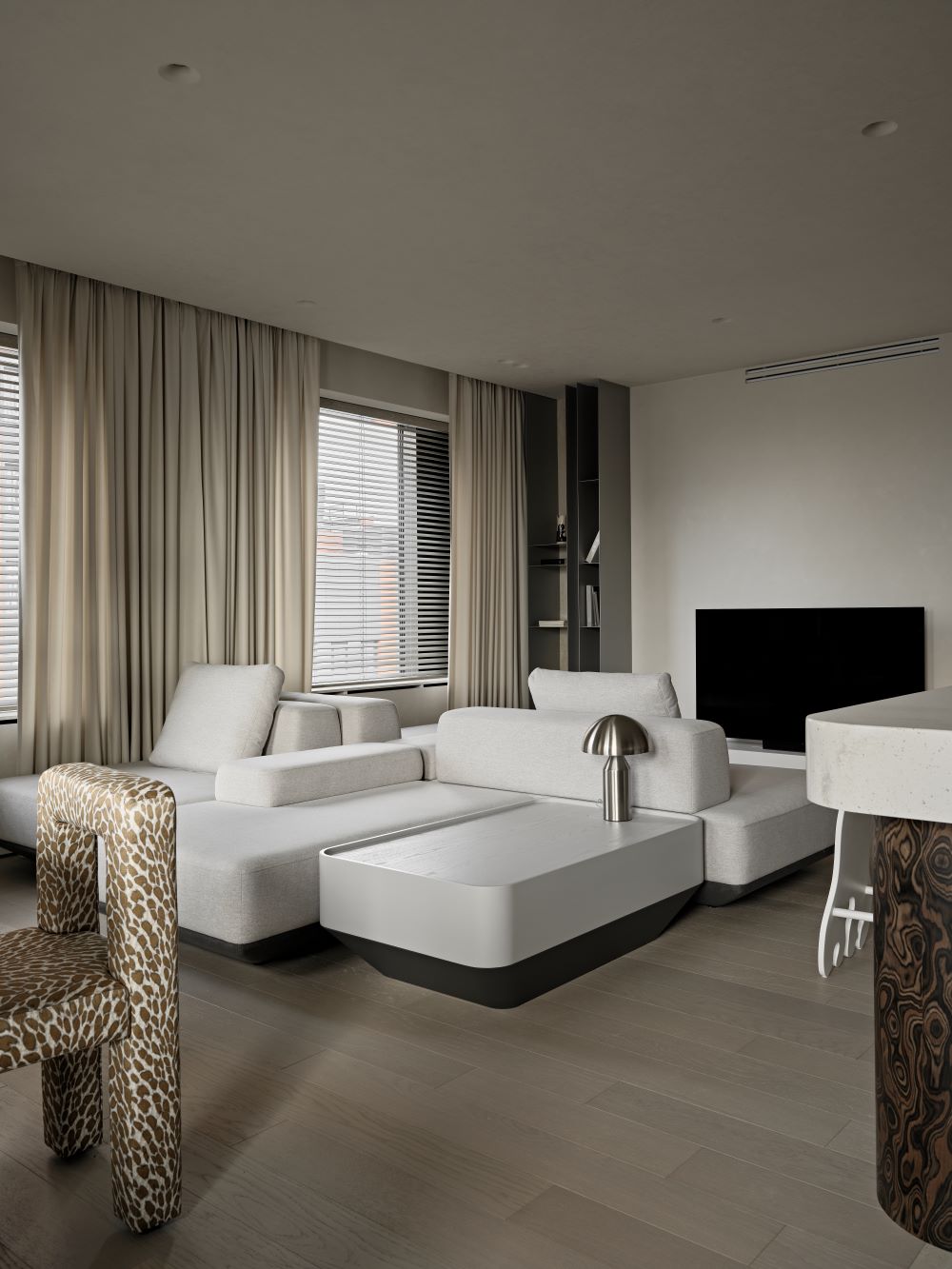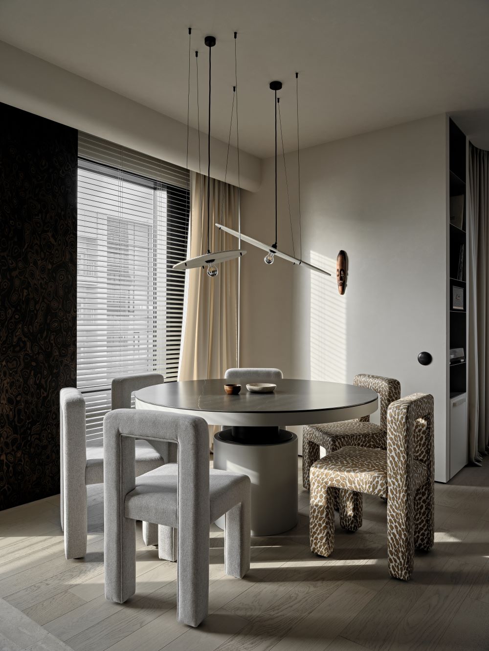 Интерьер проекта CHICAGO — это тёплая и спокойная интерпретация Japandi с африканскими акцентами.
