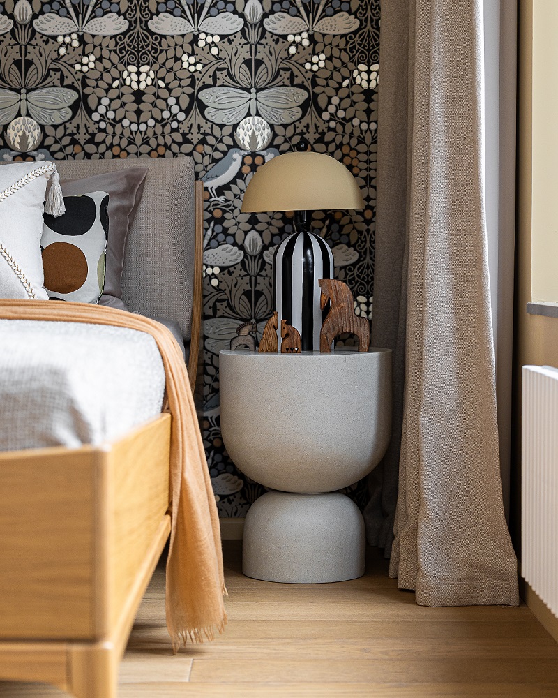 Передо дизайнером Анной Исуповой встала задача найти компромисс между архитектурой современного ЖК, ритмами большого города и привычкой заказчиков жить за городом неспешной и размеренной жизнью, их любовью к малой родине. Поэтому основа проекта стала лаконичной и современной подстать локации и видам из окон. И в эту канву умело вплели историю о любви к природе, традициям, искусству, семейные ценности и рассказы о путешествиях.