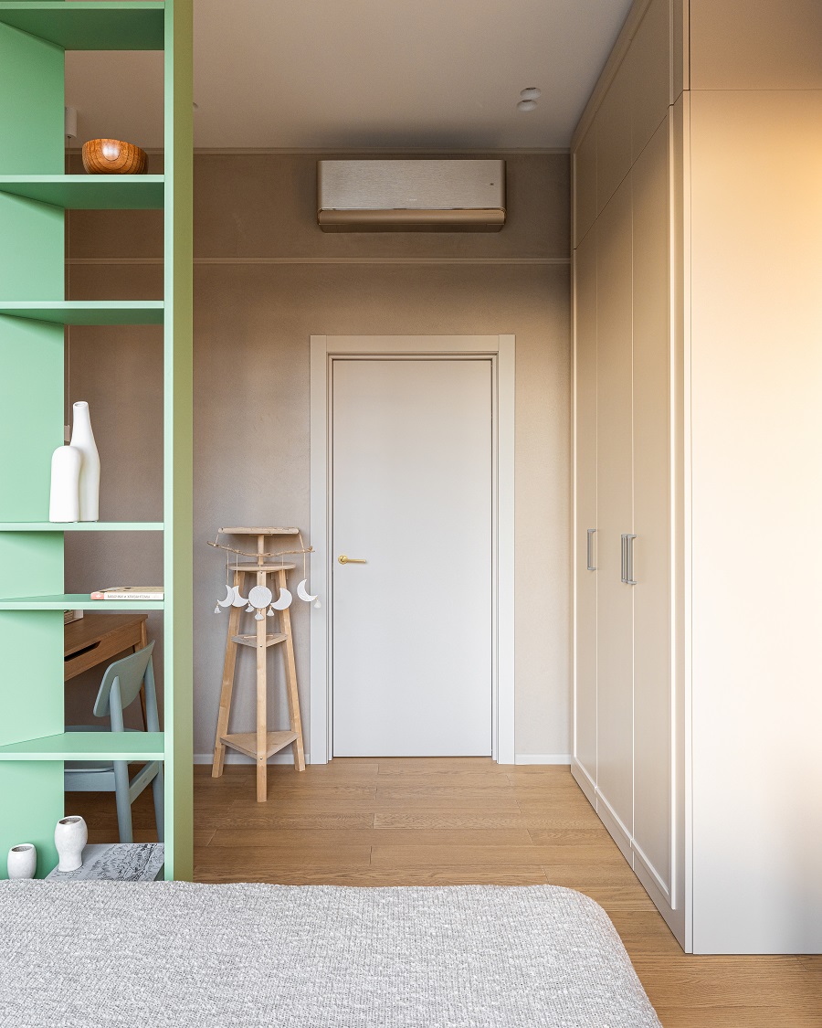 Небольшая квартира в новом ЖК проектировалась как гостевая, не для постоянного проживания. Младшей дочери 16, она поступила в художественную школу при РАХ на скульптора, поэтому у родителей возникла необходимость часто приезжать в Москву. Жизнь в мегаполисе не близка по духу владельцам квартиры, и одним из важных пожеланий было чувствовать себя как дома.