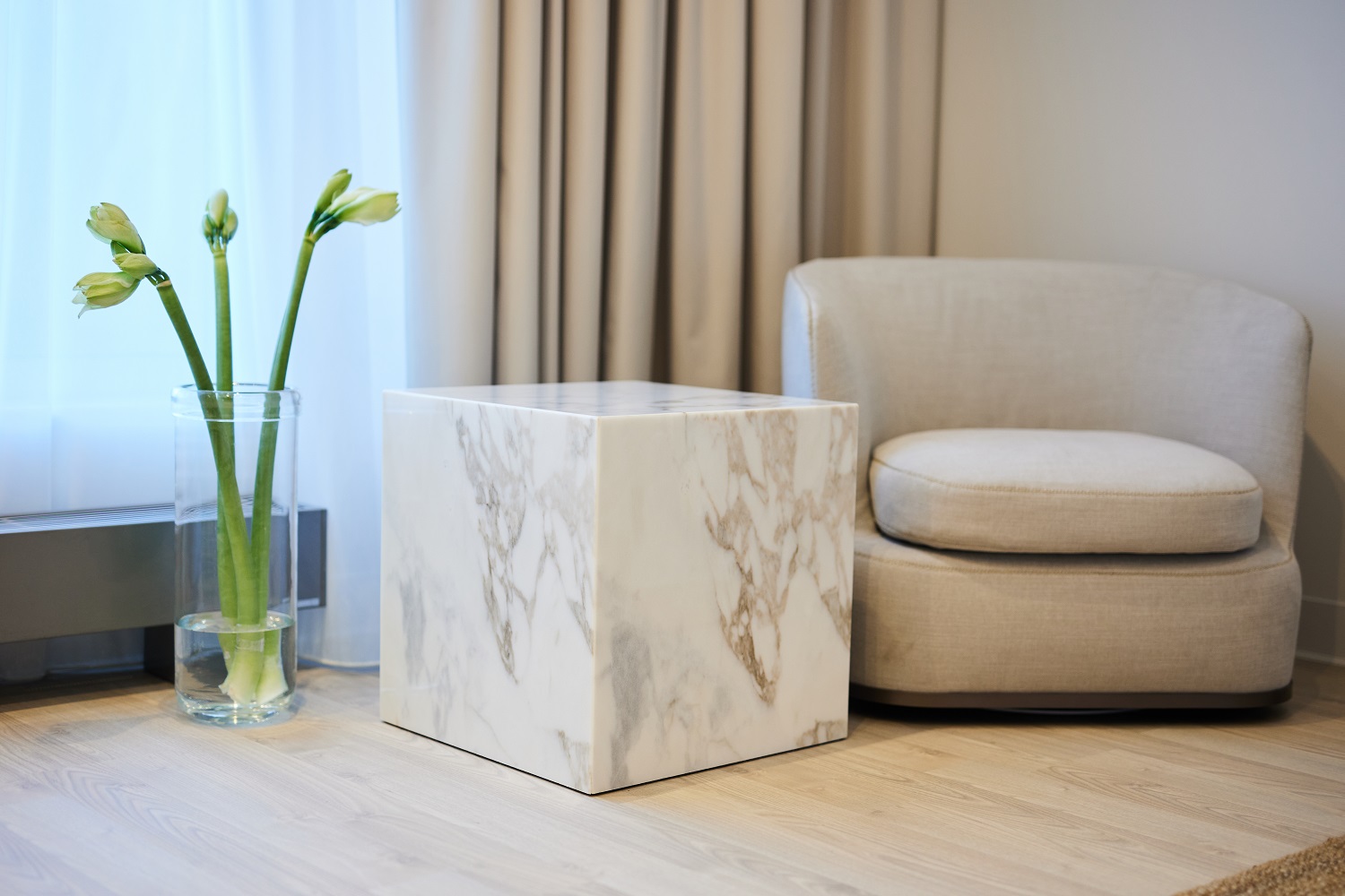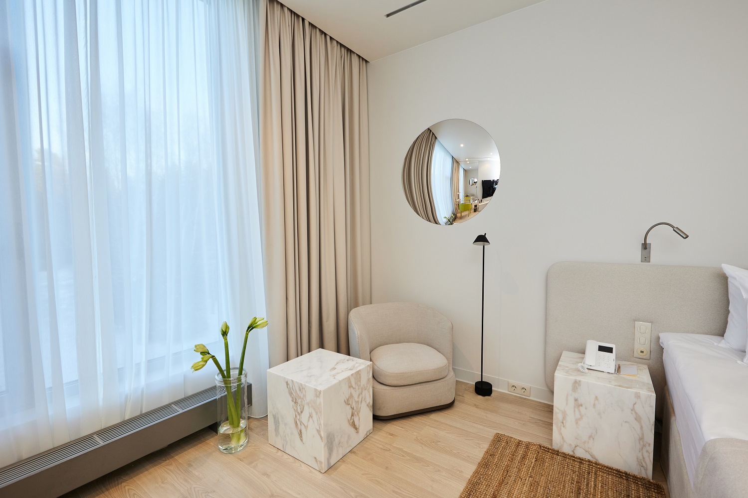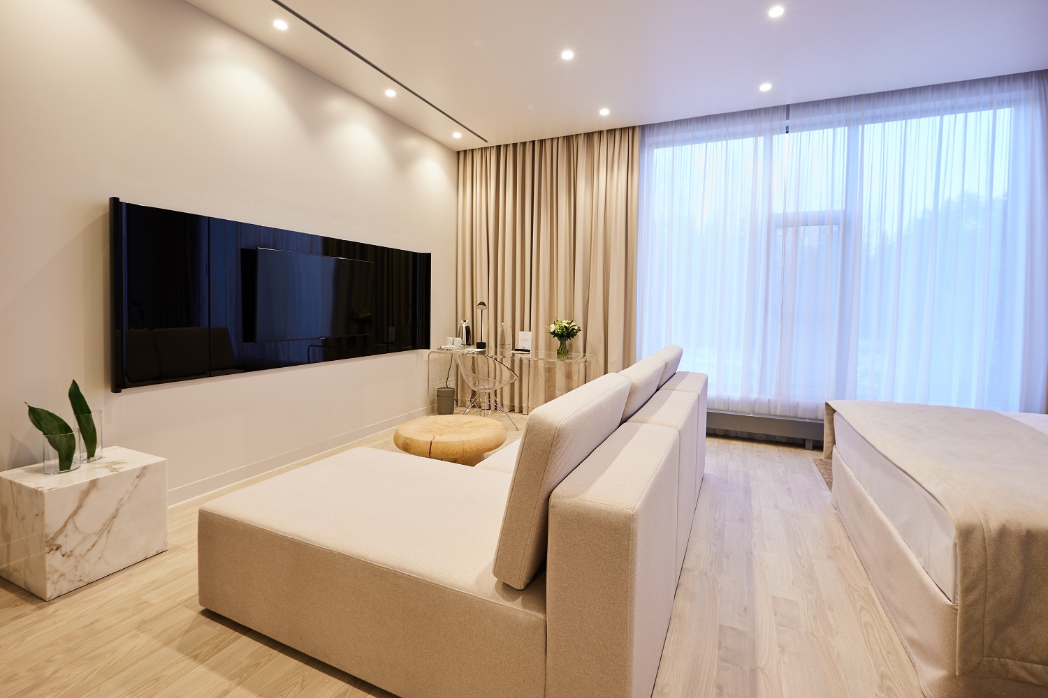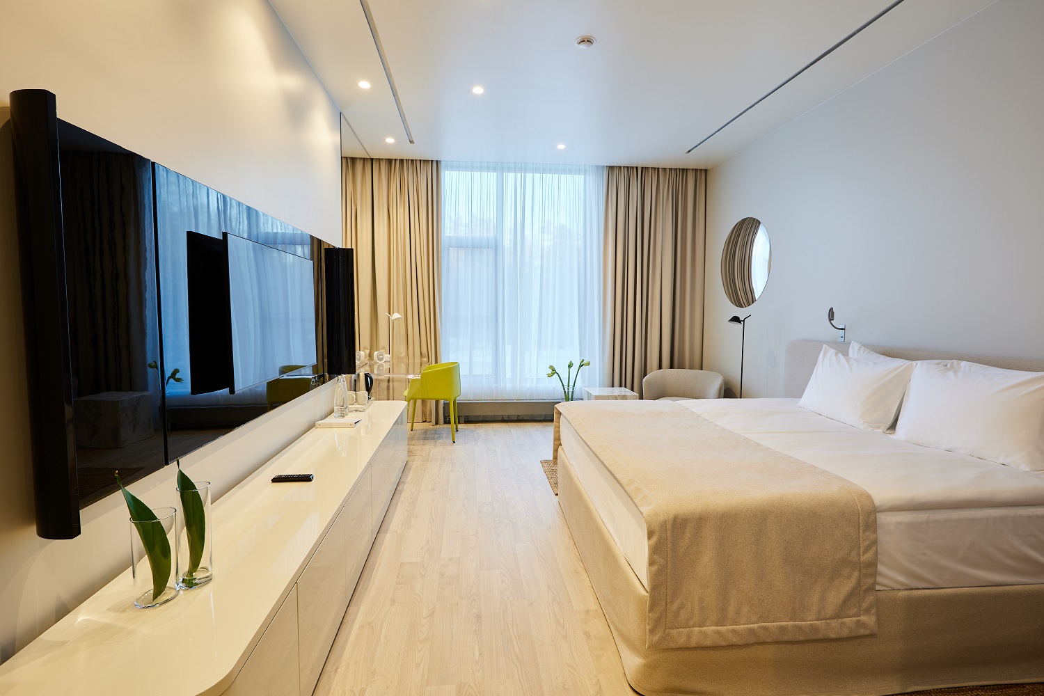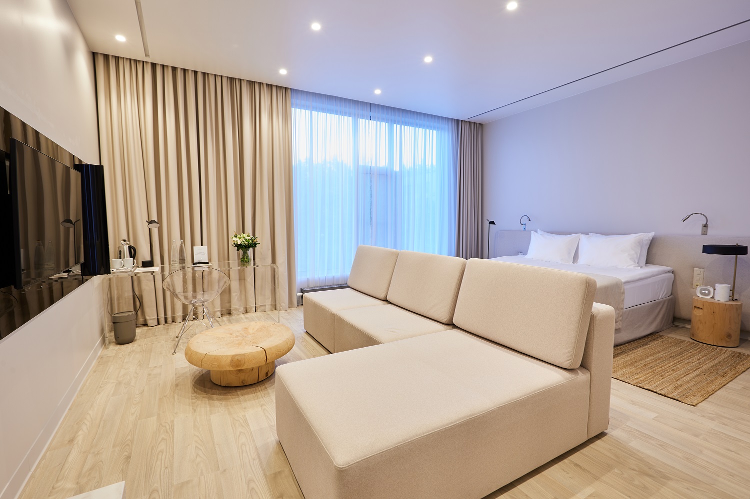 В 2024 году номерной фонд обновили: на площади 2000 кв.м лежит Quartz Parquet — экологичный пол из натурального дерева в оттенке Дуб Песочный.